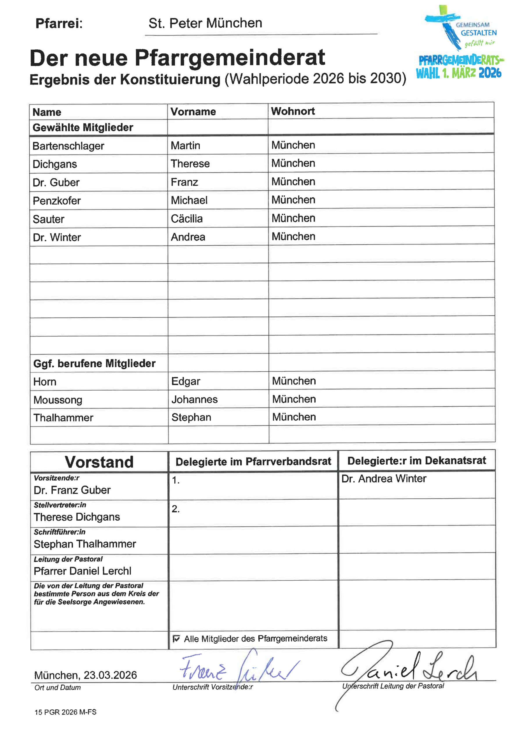 Der neue Pfarrgemeinderat 2026-2030